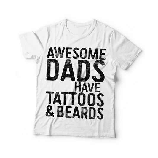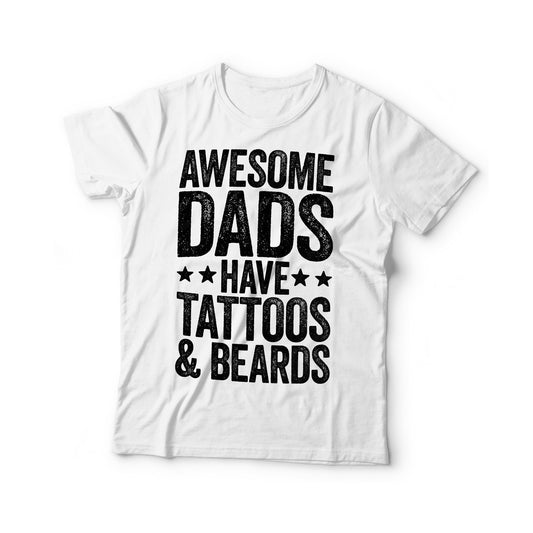 Awesome Dads Have Tattoos And Beards T-Shirt - Unisex Funny Mens Bearded Papa Dad Shirt - Vintage Grandpa TShirt for Father's Day Christmas