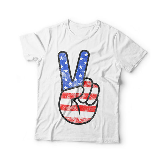 American Flag Peace Sign T-Shirt - Unisex Mens Funny America Shirt - Vintage Red White And Blue TShirt Gift for Independence Day 4th of July