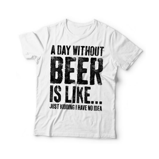 A Day Without Beer Is Like Just Kidding I Have No Idea T-Shirt - Unisex Funny Mens Drinking Shirt - Vintage Beer TShirt Gift for Christmas